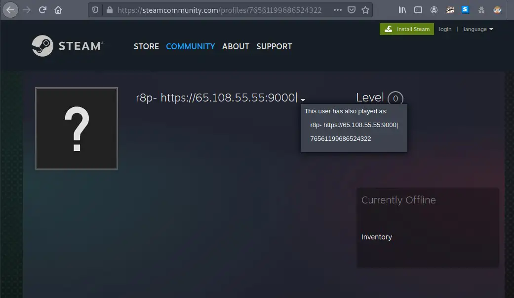 Al examinar un perfil de usuario en Steam que los delincuentes utilizan como centro de mando y control, notamos lo que parece ser un nombre aleatorio seguido de una dirección IP. En casos anteriores de este malware, se ha observado un patrón recurrente en el historial de nombres de cuenta de usuario en Steam, donde el nombre aleatorio del usuario permanece constante y solo cambia la dirección IP. Esto permite que el servidor de mando y control sea modificado fácilmente, cambiando solo la dirección IP indicada en el nombre de usuario.